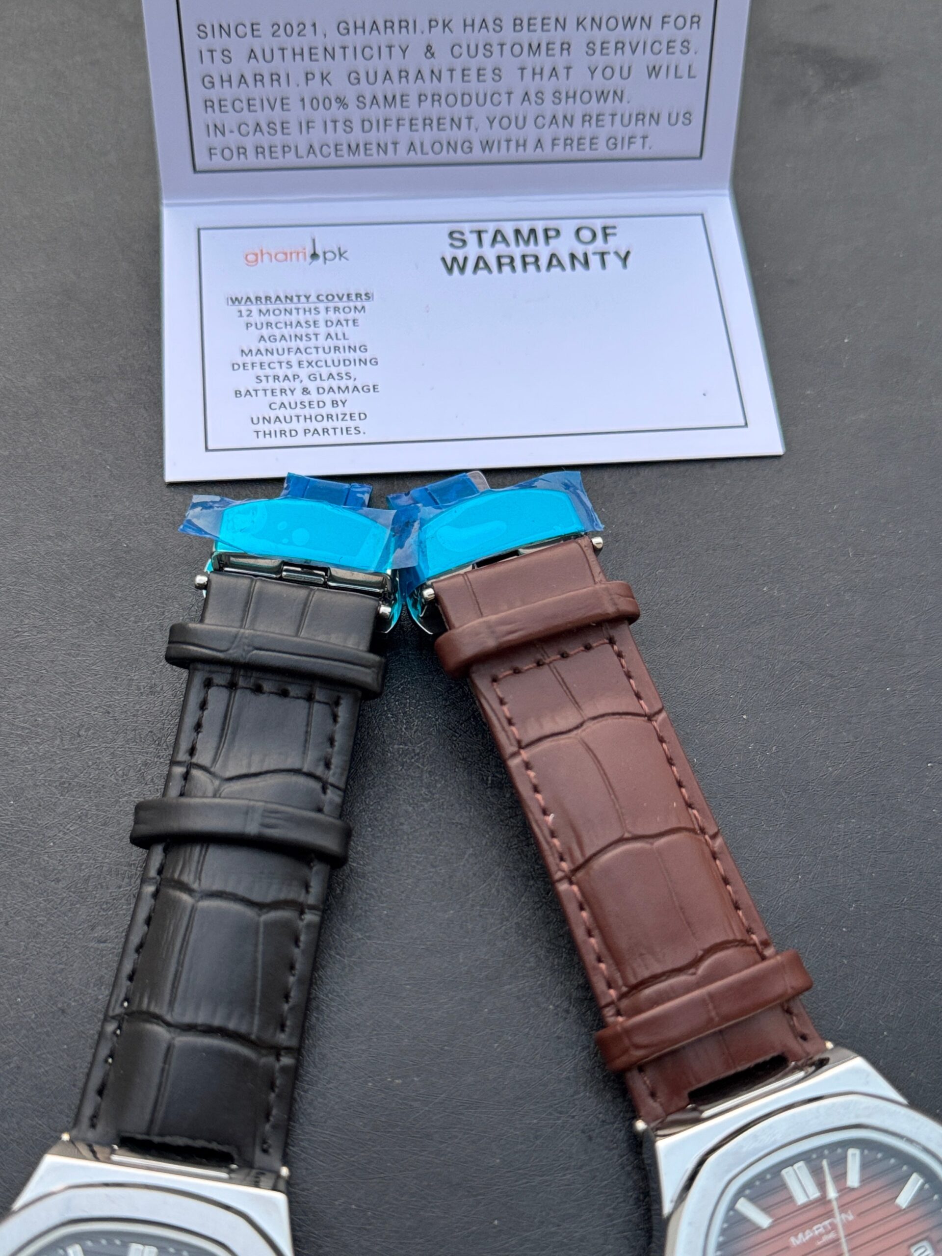 Premium Martyn Watch – High Grade Durable Straps Official One year Mechanical Warranty Special Features – Water Resistant – Unique Sporty Design – Metal Body – Stainless Steel Back – Premium Durable Colour – Ultra Premium Finish – High Grade Durable Straps